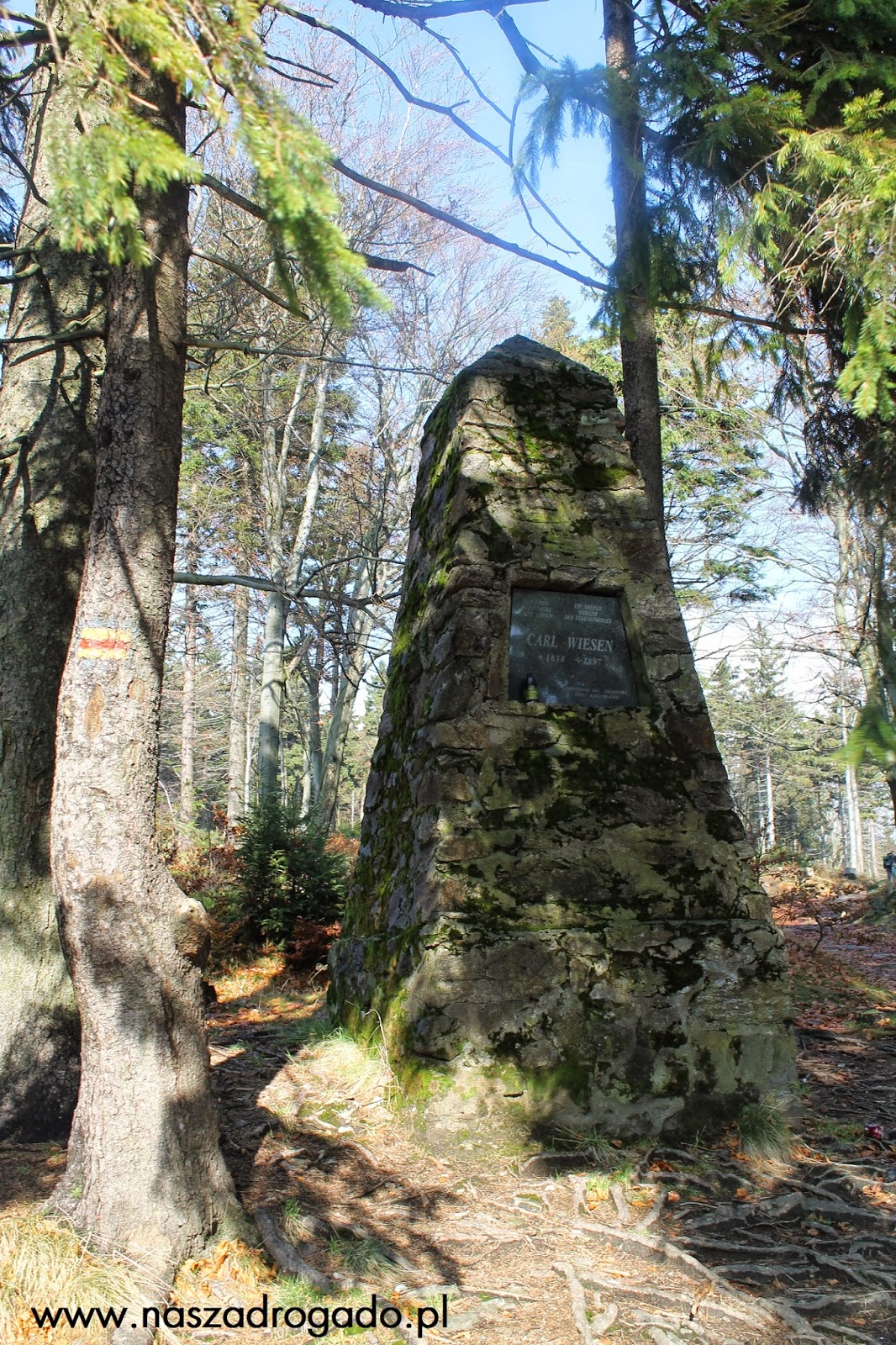 Idąc dalej, droga lekko wyrównała się i zmieniła swoje podłoże na typowo górskie. Minęliśmy Pomnik Wiesen’a i znów było pod górkę, ale tym razem nie aż tak ostro.